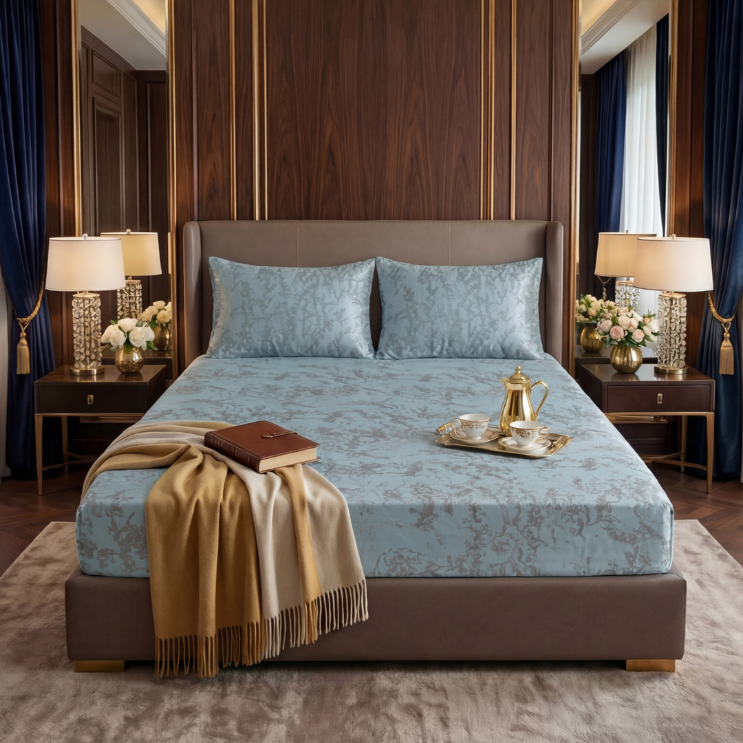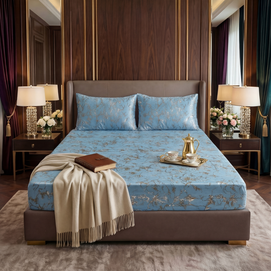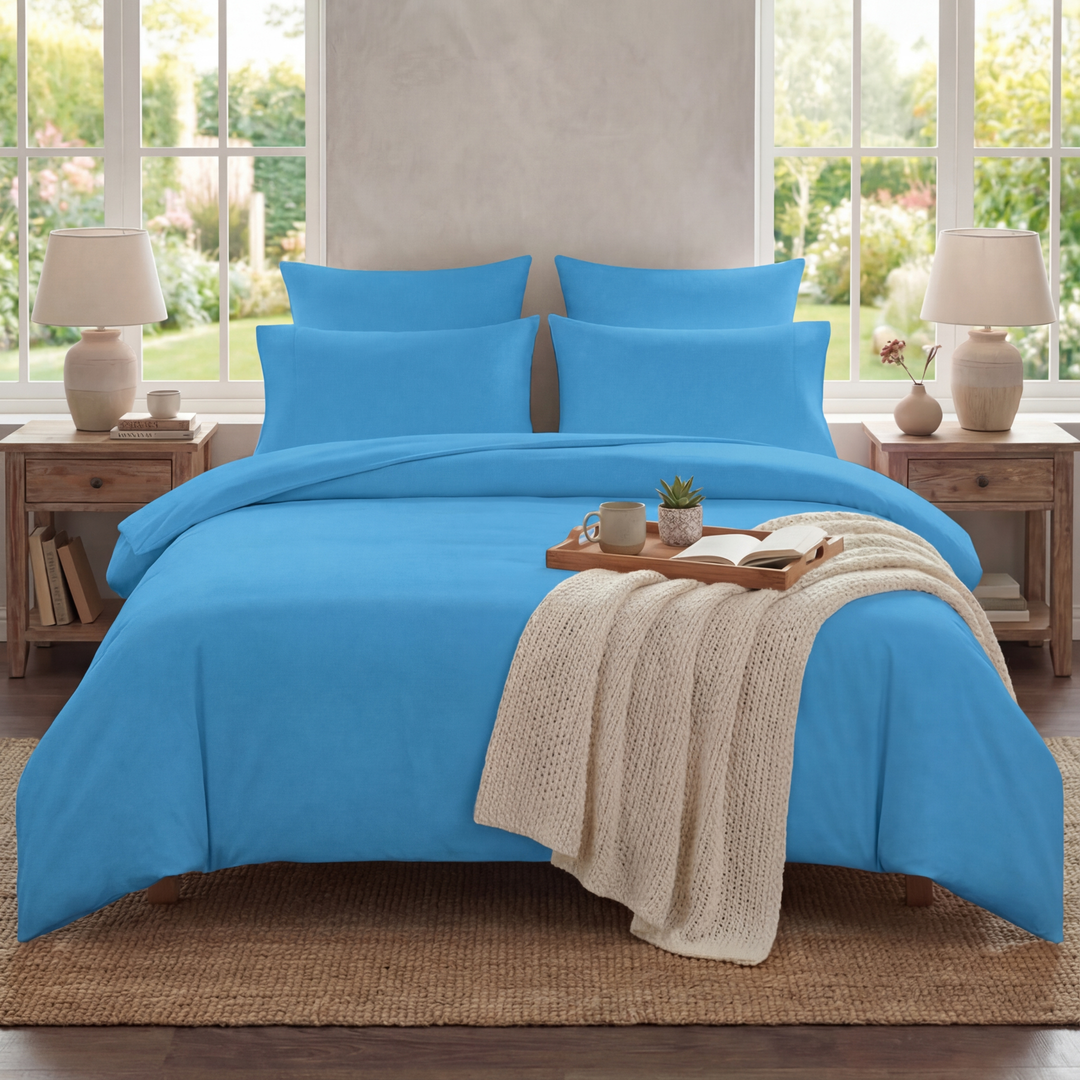 SKY BLUE LUXURY DYED BEDSHEET SET- 5 PCS