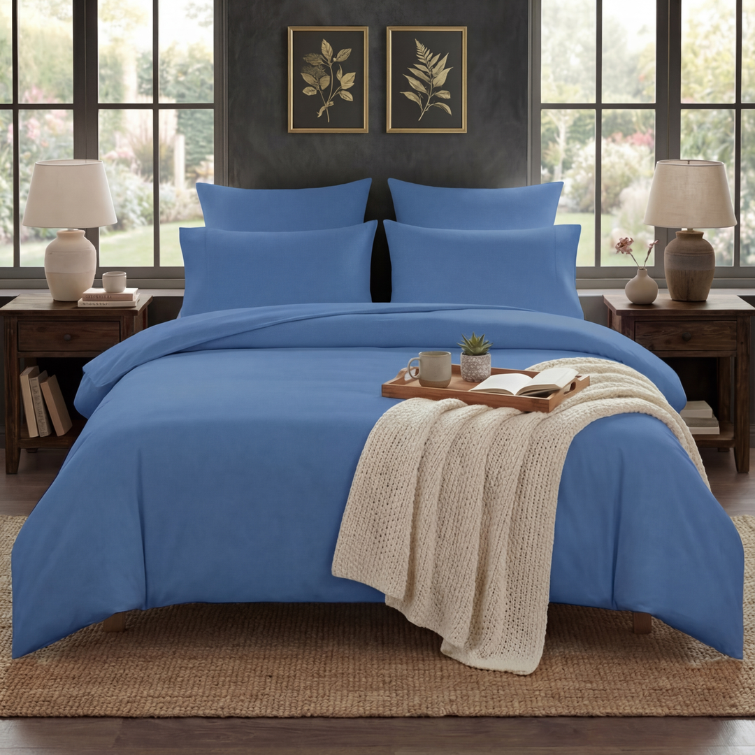 DUSTY BLUE LUXURY DYED BEDSHEET SET- 5 PCS
