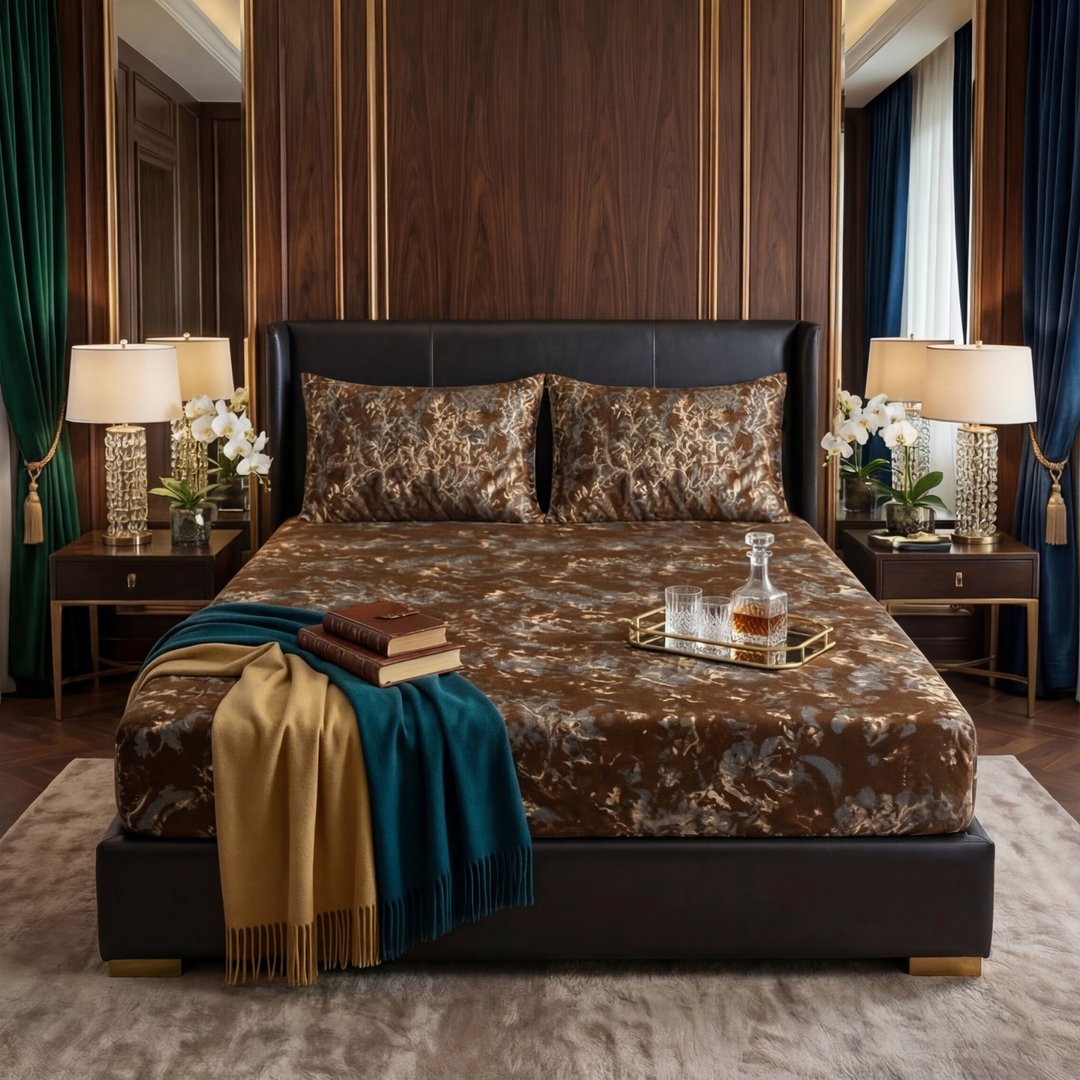 BROWN VELVET fitted bedsheet - (premium)