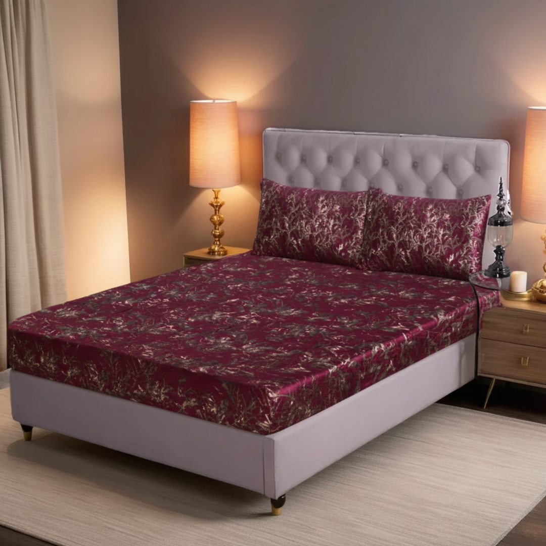 MAROON VELVET fitted bedsheet - (premium)