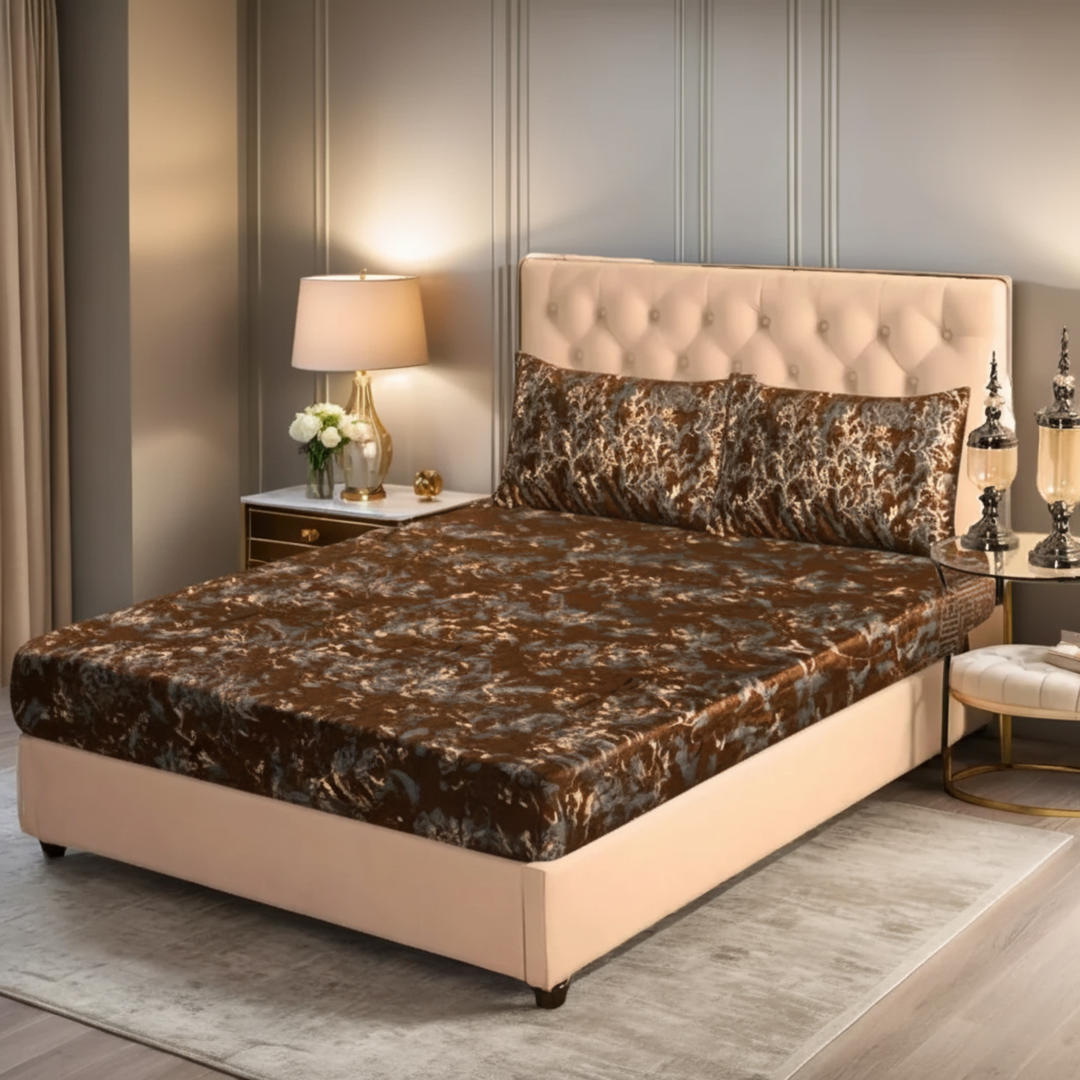 BROWN VELVET fitted bedsheet - (premium)