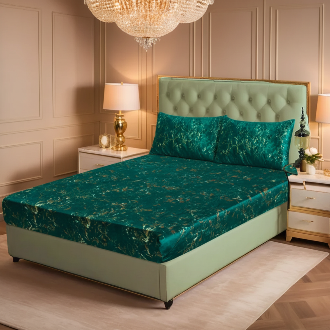 GREEN VELVET BEDSHEET SET - 5 PCS