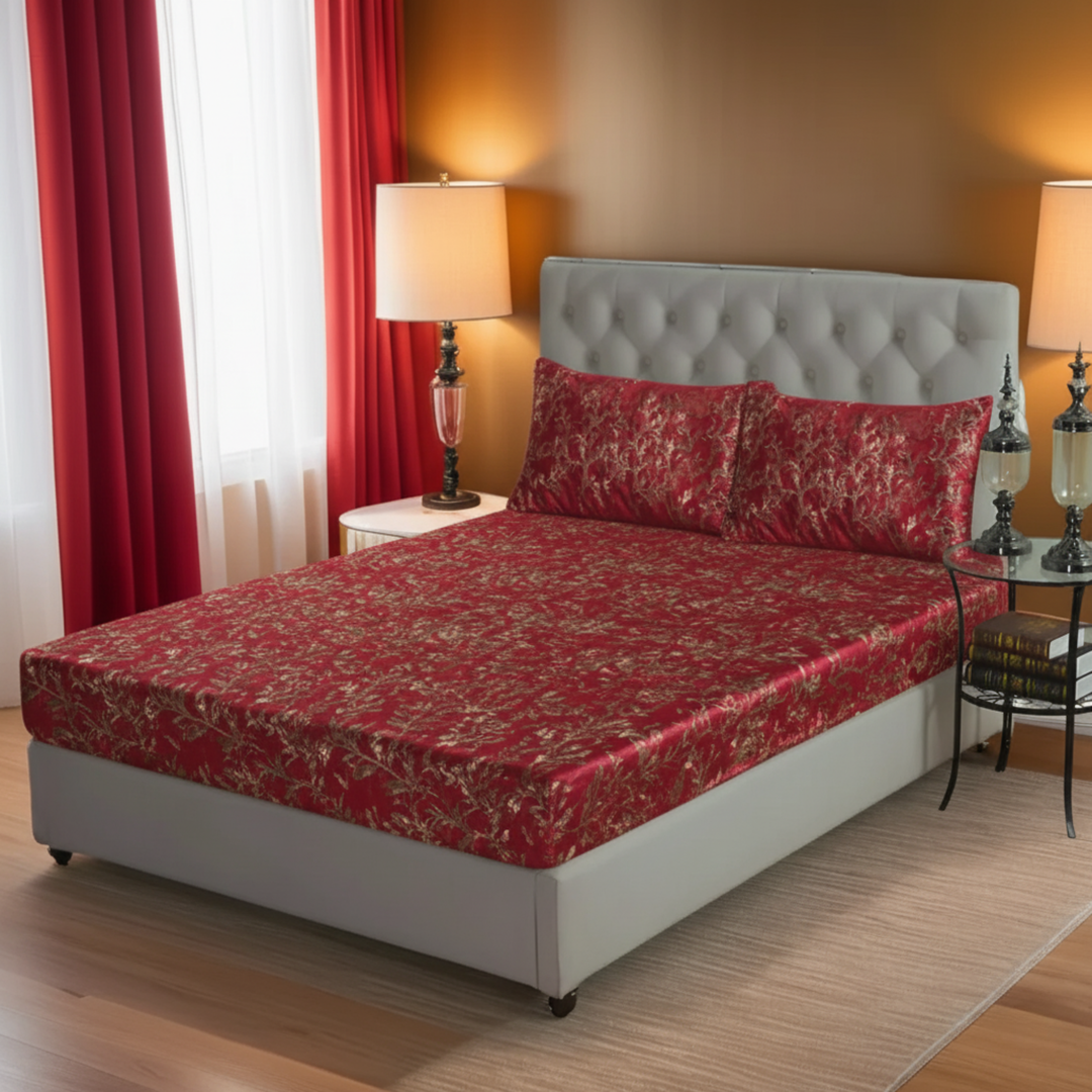 MAROON VELVET fitted bedsheet - (premium)